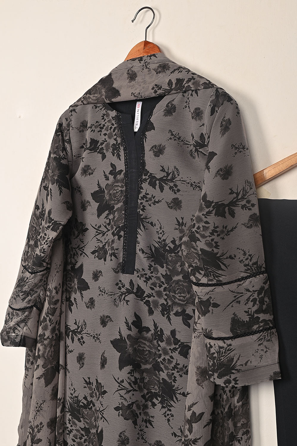 3Pc Ready to Wear Printed Chiffon Dress with Chiffon Printed Dupatta & Malai Trouser